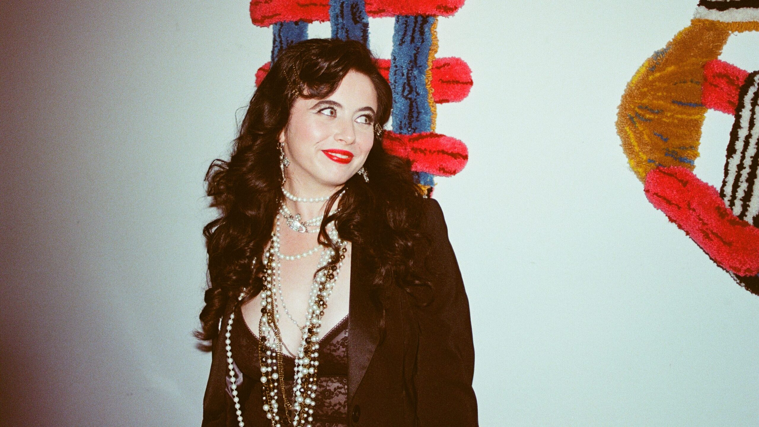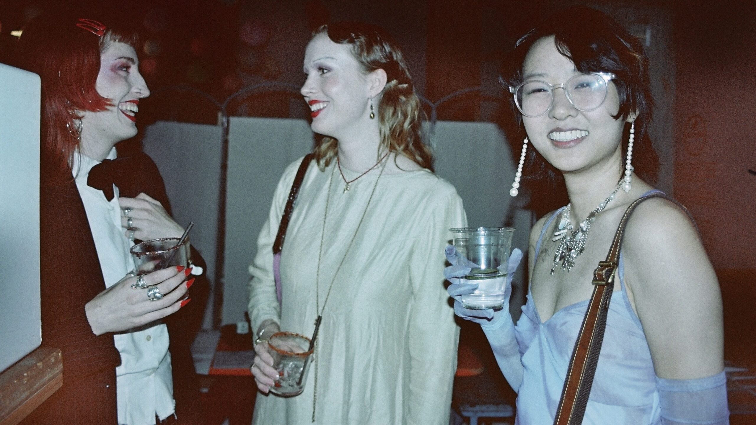 She makes full use of social media. “We’ve had people travel from Paris!” she tells me proudly. Her pride is fitting, with hundreds of tickets sold, and the air of celebration filling the room. She describes the night (“Zoe’s baby”) as “celebratory, filthy… and a little bit c*nty.” Her outfit, inspired by Marlene Dietrich plus “Y2K, filthy, secretary vibes”, features vintage lace, an ocean of pearls, and 1920s finger waves combined with a Hollywood blowout.