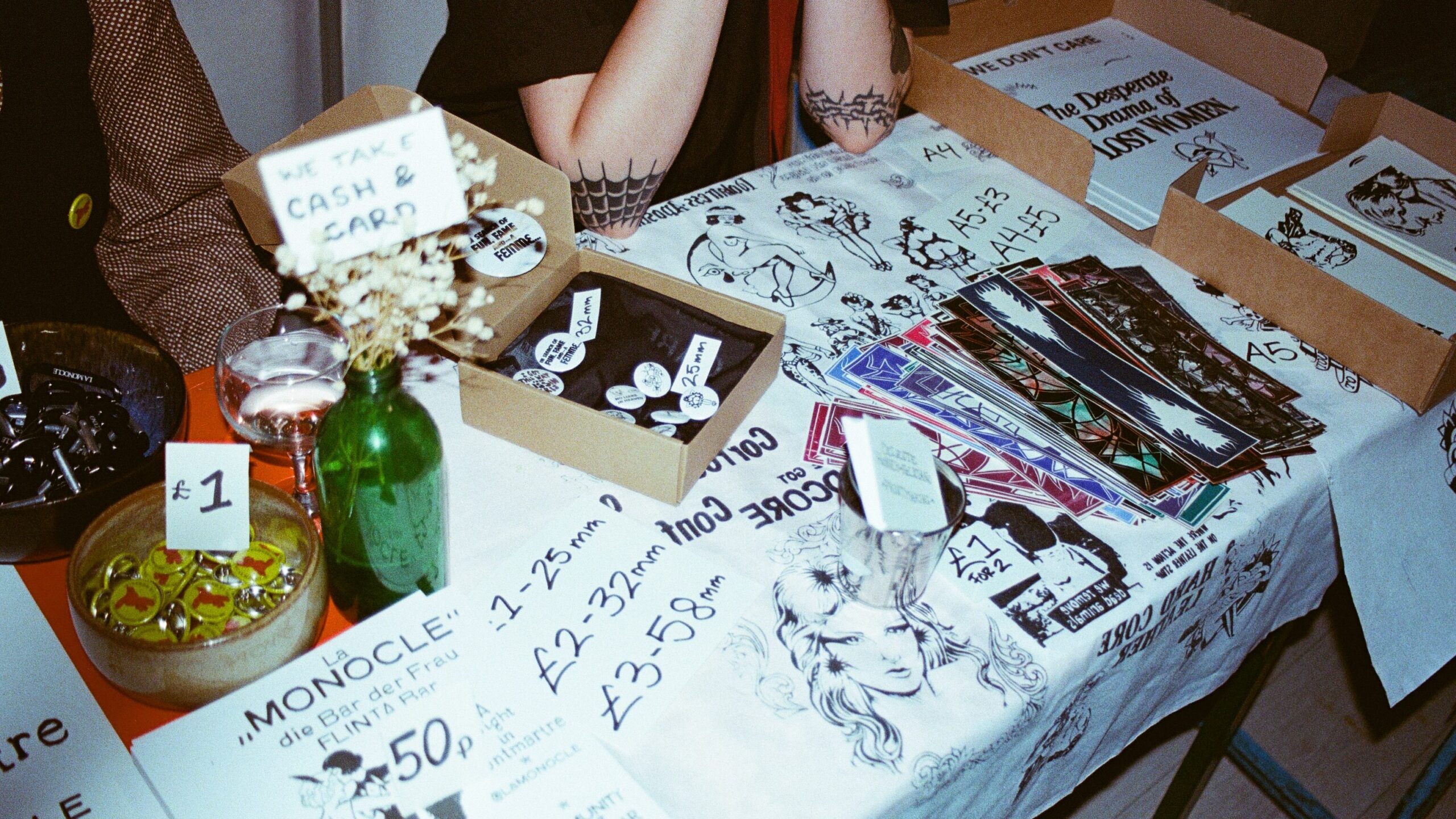 “Today, I brought a bunch of T-shirts. The girlies love these cute, tight tees. I’ve also brought some of my tattoo work, I do hand-poke tattoos, based in Brockley.”
