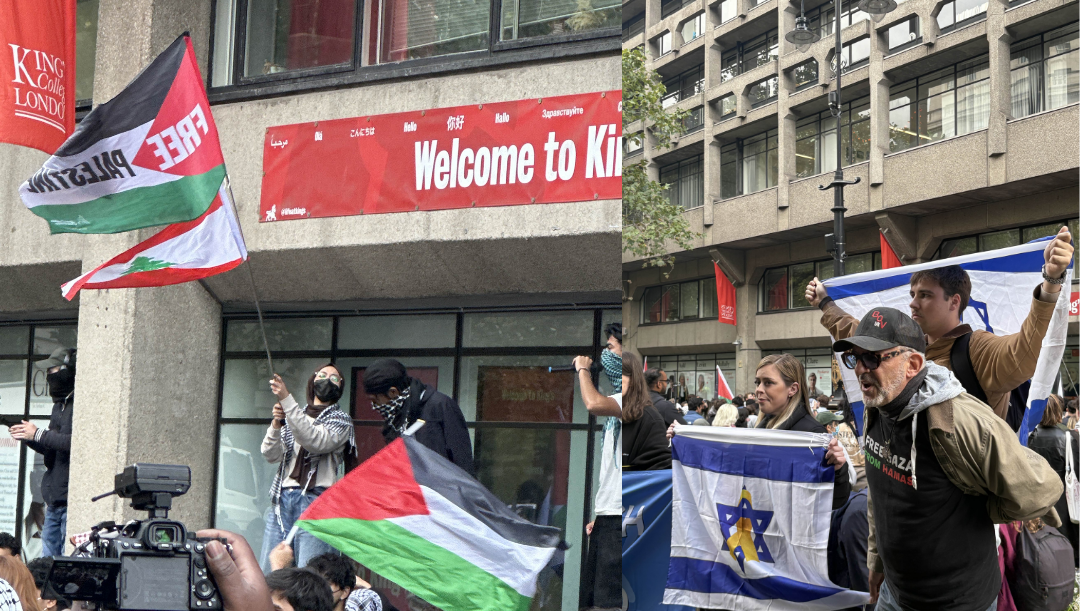 Despite tensions between King’s College London (KCL) security staff, police, and over 100 protesters and counter-protesters, the demonstration was held without significant violence.