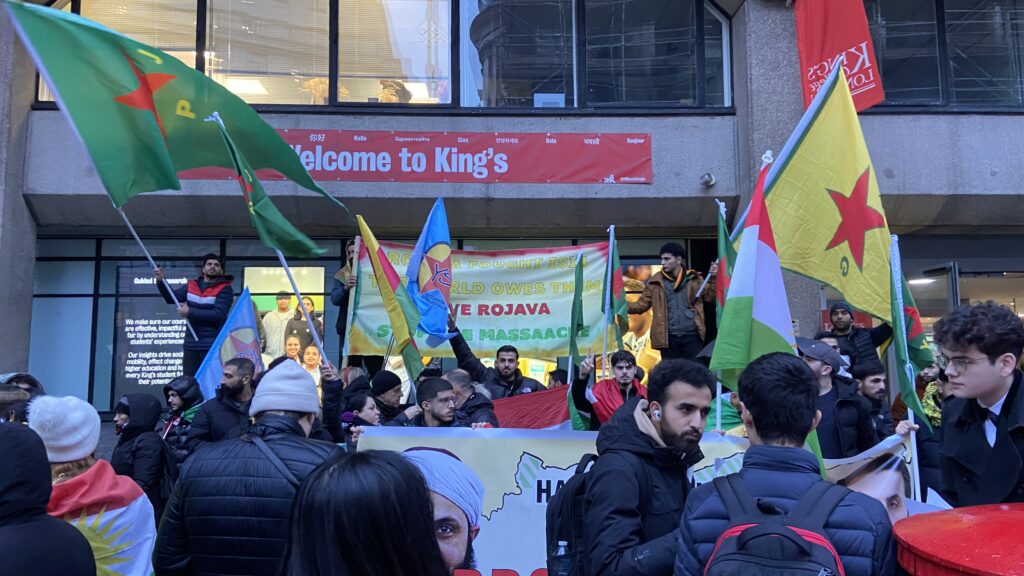 On Thursday evening, around 80 people, including students from various universities across London, gathered in front of the Strand Building to protest against violence...
